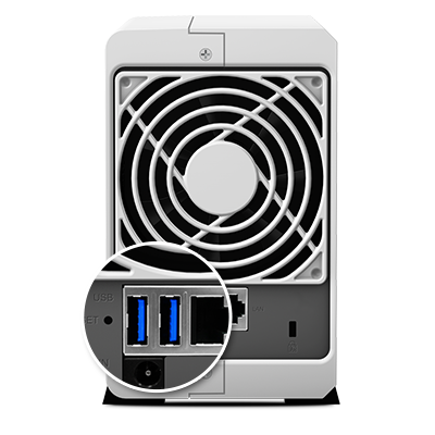 DS216j 配備 USB 3.0 埠,讓你能夠連接不同的外接儲存裝置,同時擁有快速、高效的文件傳輸效率。透過支持 USB 3.0 接口,其提供較前一代快 10 倍的傳輸速度,不僅使外接硬盤的數(shù)據(jù)傳輸更為順暢,也可降低耗電量。
