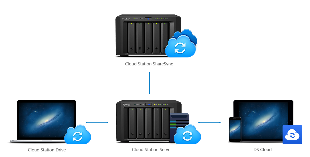 藉由豐富的云端解決方案,DS416 讓你輕松建立個人云端。Cloud Station 是高效的套件,讓你在不同裝置間同步檔案,同時具有更高的安全性。你可以離線編輯檔案,完成后再同步至 Cloud Station。每個檔案皆可存放高達 32 個版本,使你能將檔案回復(fù)到過去的時間點。透過行動 app DS cloud,所有檔案更新都將自動同步到你的智能手機和平板電腦。針對分布式企業(yè),Synology 可讓兩臺 DiskStation 進行雙向同步,讓不同地點的員工仍可以實時分享相同的檔案。此外,IT 人員還可以手動挑選想要同步到不同裝置上的文件夾,或自動根據(jù)文件格式、大小等標準來篩選。Cloud Station 同步的文件夾可在服務(wù)器端由 DSM 加密,沒有你的密碼,別人無法存取其內(nèi)容。
