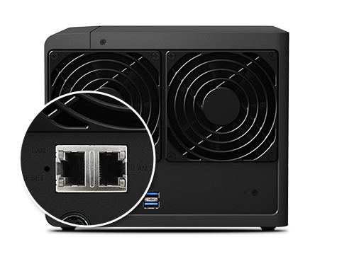 DS416 內(nèi)建支持故障移轉(zhuǎn)及 Link Aggregation 的雙網(wǎng)絡(luò)埠,在其中一個網(wǎng)絡(luò)埠故障的狀況下,仍可確保聯(lián)機繼續(xù),降低服務(wù)中斷的可能性以及因停機所造成的昂貴成本。此外,Link Aggregation 充分發(fā)揮雙網(wǎng)絡(luò)埠的優(yōu)點,可提升連接速度,突破單一網(wǎng)絡(luò)線或網(wǎng)絡(luò)埠的速限。
